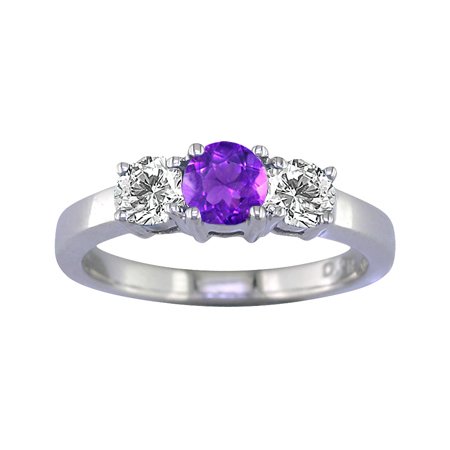 1/2 Ct Three-Stone Amethyst & Diamond Engagement Ring In 14K White Gold Review