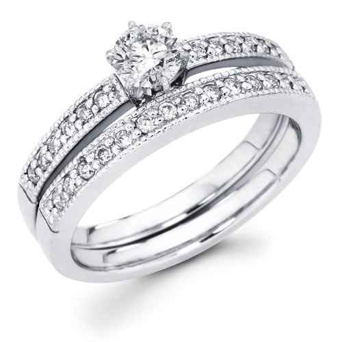 14k White Gold Solitaire Round Diamond Bridal Engagement Ring Set w/ Matching Milgrain Channel Set Wedding Band (1/2 cttw, 1/4 ct Center, G-H Color, SI1 Clarity) Review