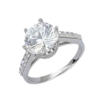 Sterling Silver Engagement Ring With Round Cubic Zirconia In 6 Prong Setting With Sidestones in Shared Prong Setting Review