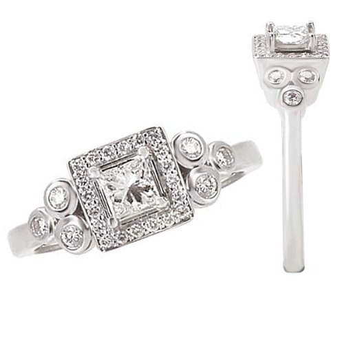 14k white gold diamond engagement ring with .25 carat princess cut diamond center Review
