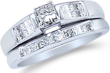14k White Gold Diamond Ladies Womens Bridal Engagement Ring with Matching Wedding Band Two 2 Ring Set Solitaire with Side Stones Channel Invisible Set Princess Cut Diamond Ring (.46 cttw, 0.16 ct Center, G - H Color, SI2 Clarity) Overview